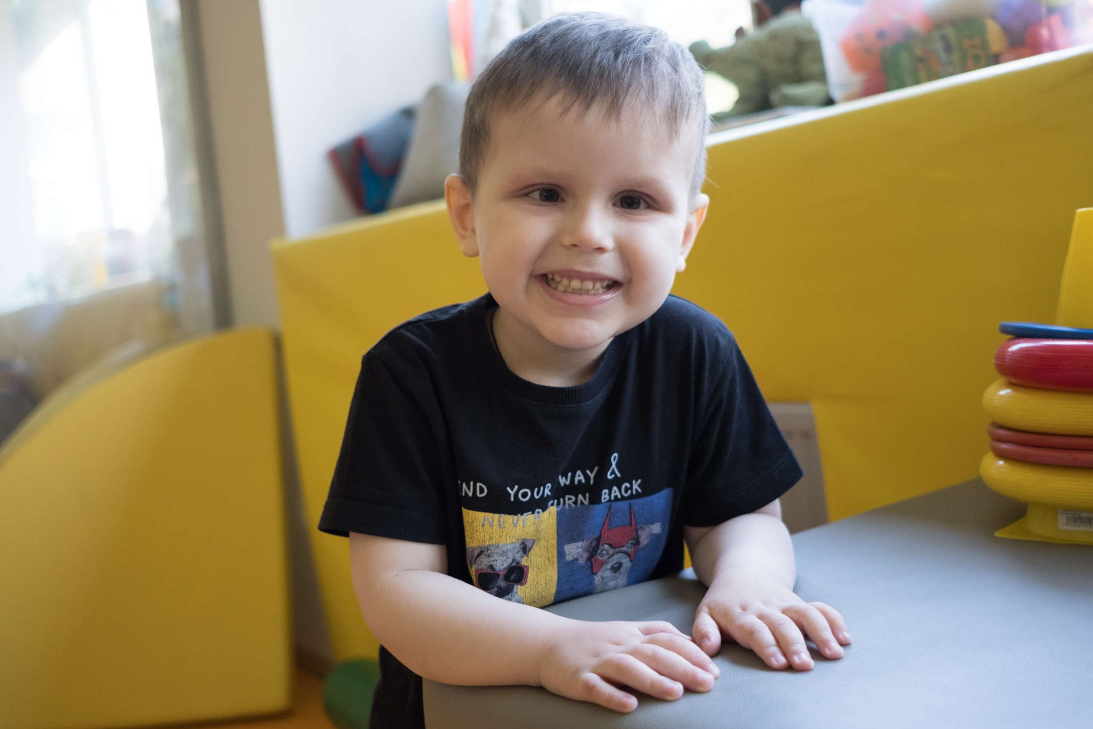 Тяжёлое лечение оставило след на здоровье Димы, словно отбросило на пару лет назад. Он заново учится держать ложку, ходить без поддержки, строить из слов предложения.