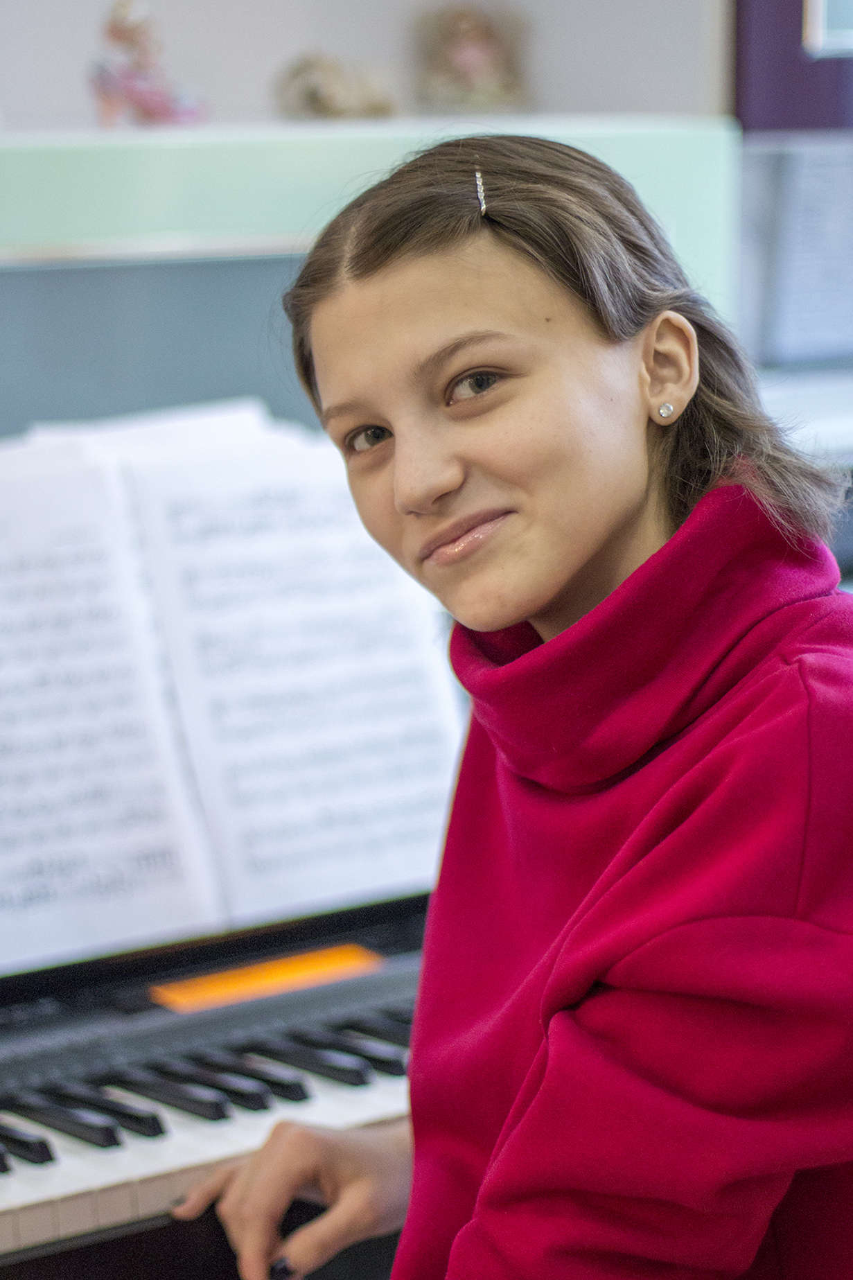 Первое красивое и уже давно профессиональное увлечение — музыка. С раннего детства Катя занималась вокалом, закончила музыкальную школу по классу фортепиано. Но рассказывая об этом, скромничает: «Не так уж хорошо я пою. И с нотной грамотой в музыкальной школе были проблемы...». А папа Андрей, несмотря на скепсис дочки, решительно это отрицает. Вспоминает выступление Кати на вокальном конкурсе, когда ей было всего пять лет: «Банты, косы, звонкий голос! В середине выступления отключился микрофон, а Катя нисколько не стушевалась — продолжила петь, да ещё и приплясывала». И именно с такой уверенностью и настроением Катя продолжает идти по жизни.