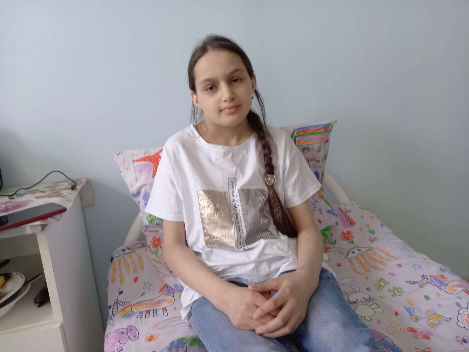 А сама девочка мечтает пойти в школу, как её ровесницы, много и кропотливо учиться и в будущем стать детским врачом.